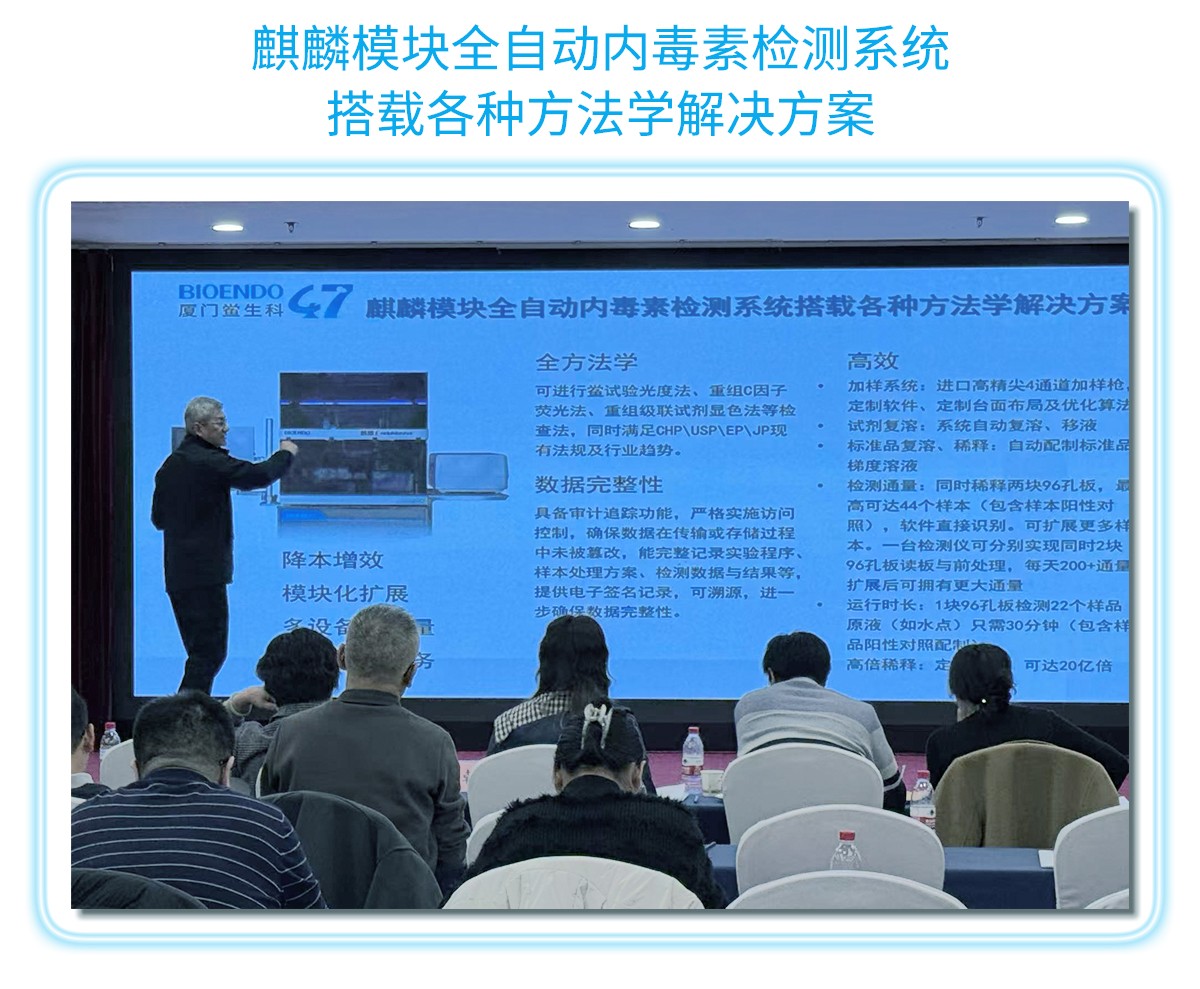 廈門鱟生科吳尚毅董事長在會議上介紹了“智檢未來+重組替代”的可持續(xù)發(fā)展內毒素檢測全面解決方案報告。展示了廈門鱟生科47年專注鱟試劑、內毒素檢測領域的發(fā)展歷程及成果,介紹了我司檢測試劑+檢測設備+專業(yè)軟件+重組試劑+全自動智能機器人+體系驗證全面解決方案的產(chǎn)業(yè)化升級,從傳統(tǒng)鱟試劑轉型升級為AI+合成生物學領先企業(yè),保護鱟資源,實現(xiàn)可持續(xù)發(fā)展的戰(zhàn)略規(guī)劃,努力建設符合國家發(fā)展政策的高質量新質生產(chǎn)力企業(yè),助力我國醫(yī)藥行業(yè)發(fā)展。